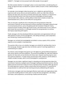 SUBJECT 1 : Teenagers are too young to teach other people. Do you agree?