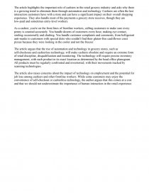 The article also raises concerns about the impact of technology on employment and the potential for job loss among cashiers and other frontline workers. While some customers may enjoy the convenience of self-checkout or cashierless technology, the author argues that this comes at a cost and that we should not underestimate the importance of human interaction in the retail experience.
