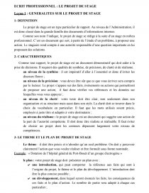 Leçon 1 : GENERALITES SUR LE PROJET DE STAGE