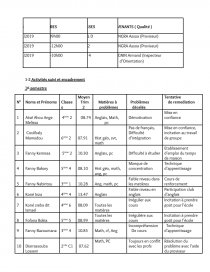 7 | Koné zieba dit Ismael | 4ème 6 | 08.09 | Toutes les matières | Irrégulier aux cours | Incitation à prendre goût pour l’école |