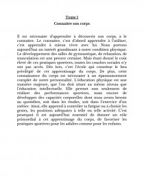 Il est nécessaire d’apprendre à découvrir son corps, à le connaitre. Le connaitre, c’est d’abord apprendre à l’utiliser, c’est apprendre à mieux vivre avec lui. Nous portons aujourd’hui un intérêt grandissant à notre condition physique. Le développement des salles de gymnastique, de relaxation, de musculation est une preuve certaine. Mais étant donné le coût élevé de ces pratiques sportives, toutes les couches sociales n’y ont pas accès. Dès lors, c’est l’école qui constitue le lieu privilégié de cet apprentissage du corps. De plus, cette connaissance du corps est nécessaire à un épanouissement complet de notre personnalité. L’éducation physique est une manière majeure, que l’on doit situer au même niveau que l’éducation intellectuelle. Elle permet non seulement de réaliser des performances sportives, mais encore de développer des capacités corporelles dont nous avons besoin au quotidien, soit dans les études, soit dans l’exercice d’un métier. Ainsi, elle apprend à contrôler ta fatigue ou à choisir les gestes, les positions adéquates à telle ou telle activité. C’est pourquoi il est aujourd’hui essentiel de donner un rôle primordial à cet apprentissage du corps, de favoriser les pratiques sportives pour les adultes comme pour les enfants.