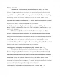 ‘Colonialism is [...] both a specified political and economic project, and a larger discourse of hegemony (leadership/dominance) and superiority that is enlisted to drive and support that concrete political act. The colonial project involves the literal process of entering into a foreign territory and assuming control of its society and industry, and, on a more conceptual level, the post facto promulgation of a cultural ideology that justifies the colonizer’s presence on the basis of his superior knowledge and “civilization”.’