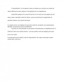 L’interculturalité, c’est la capacité a rentrer en relation avec celui qui a un système de valeurs différents du miens, dépenser l’incompréhension a la compréhension.