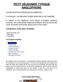 In a first part, i will talk about English break fast or Irish breakfast ;