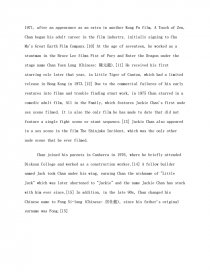 Fiche : Biographie de Jackie Chan (document en anglais). Recherche parmi 303 000+ dissertationsPar dissertation • 16 Mai 2013 • Fiche • 557 Mots (3 Pages) • 1 030 Vues