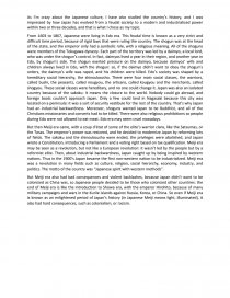 As I’m crazy about the Japanese culture, I have also studied the country’s history, and I was impressed by how Japan has evolved from a feudal society to a modern and industrialized power within two or three decades, and that is what I chose as my topic.