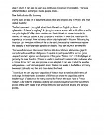 The second document Man versus Machine talk about Watson, Watson is a gigantic computer with an artificial intelligence. It capable to participated at the famous game Jeopardy and win against two champions of this game. Watson don’t only limit played at jeopardy it’s more than this. Watson is useful in medicine for determinate syndromes who a normal doctor can’t see, and propose a cure adapted. It can also predict the weather with precision… Watson can do lot of other things, the list It’s to long to be honest.