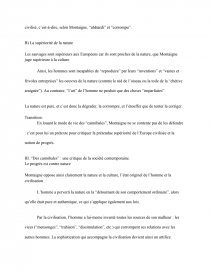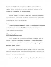 Tout au long du texte, il oppose ainsi la société des “sauvages” et celle des Européens, à travers une série d’antithèses : les hommes du Nouveau Monde possèdent des “vertus et propriétés” qui sont “les véritables”, “les plus utiles”, “les naturelles”, alors que “nous”(les Européens) les “avons abâtardies” par “notre gout corrompu”.
