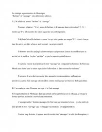 Il définit d’abord la barbarie comme “ce qui n’est pas de ses usages”(l.2). Aussi, chacun juge les autres sociétés selon ce qu’il connait : sa propre société.
