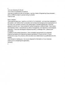 Firs of all, your company is known to be cutting-edge in scientific field/domain,I would be pleased to work for you. I have worked for several companies in different fields. I have mainly had interships where i overachieved my skills of management, and objectives in technological application. I have also developped interpersonal-skills, a challenge mind , patience and punctuality.