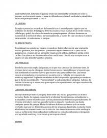 Gracias a la vegetación introducida, se diferenciara y enfatizara el ambiente de cada espacio. Eso permite crear un efecto de sorpresa lúdico para el usuario, que, al pasar de un ambiente a otro vivirá una aventura recreativa. Un parque con espacios bien caracterizados permite una mejor orientación y entonces un mejor uso.