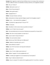 Synopsis :Kévin regarde un match de foot et William arrive à la mi-temps. Kévin commence à raconter le début du match. Et la deuxième mi-temps commence, et ils regardent ensemble.