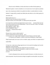 Il reste là, allongé près de moi, plus rien ne peut lui faire peur, ou lui faire du mal, je le caresse doucement. Son poil sale entre mes doigts me rappelle ma seule peluche, mon seul ami, le seul qui ne m'ait pas abandonné. Il est là, calme, reposé, on dirait presque qu'il dort.