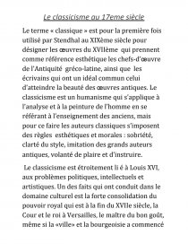 Le terme « classique » est pour la première fois utilisé par Stendhal au XIXème siècle pour désigner les œuvres du XVIIème qui prennent comme référence esthétique les chefs-d’œuvre de l’Antiquité gréco-latine, ainsi que les écrivains qui ont un idéal commun celui d’atteindre la beauté des œuvres antiques. Le classicisme est un humanisme qui s’applique à l’analyse et à la peinture de l’homme en se référant à l’enseignement des anciens, mais pour ce faire les auteurs classiques s’imposent des règles esthétiques et morales : sobriété, clarté du style, imitation des grands auteurs antiques, volanté de plaire et d’instruire.