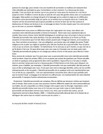 L’identité est un ensemble de caractéristiques formant une unité qui est une personne, un corps, une personnalité. Le corps pourrait donc être le lieu de l’identité personnelle mais peut-on dire que l’identité personnelle se réduit au corps ? Tout d’abord, nous allons voir que l’on peut refaçonner notre corps voir même renverser notre nature puis les différents moyen que l’on a de montrer à l’extérieur qui on est à l’intérieur et enfin qu’il est possible de jouer avec cette personnalité mais que notre identité personnelle nous reste propre à chacun, il est impossible de faire une synthèse de notre identité personnelle.