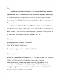 Cette pièce de théâtre est la dernière de Molière, c’est de plus, une comédie-ballet en 3 actes. Avant cet extrait, Cléante s’est présenté en tant que professeur de musique d’Angélique et Béline à rapporté à argan qu’elle à vue un homme sortir de la chambre de sa fille. Cet extrait est un interrogatoire, Argan interroge Louison sur l’homme qu’elle a vue.
