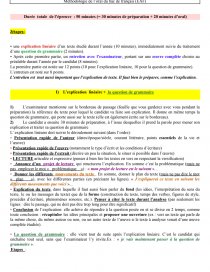 ▪ une explication linéaire d’un texte étudié durant l’année (10 minutes), immédiatement suivie du traitement d’une question de grammaire (2 minutes).