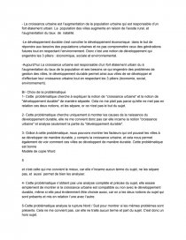 1- Cette problématique cherche à expliquer la notion de "croissance urbaine" et la notion de "développement durable" de manière séparée. Cela ne me plait pas parce qu'elle ne met pas en relation ces deux notions, et les sépare, or ce n'est pas le but du sujet.