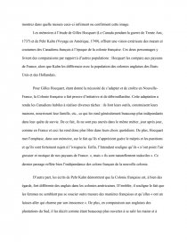 Les mémoires à l’étude de Gilles Hocquart (Le Canada pendant la guerre de Trente Ans, 1737) et de Pehr Kalm (Voyage en Amérique, 1749), offrent une vision extérieure des mœurs et coutumes des Canadiens-français à l’époque de la colonie française. Ces deux personnages y livrent des comparaisons par rapport à d’autres populations : Hocquart les compare aux paysans de France, alors que Kalm les différencie avec la population des colonies anglaises des États-Unis et des Hollandais.