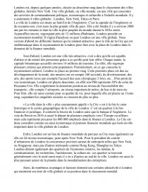 Aujourd'hui encore, regroupant près de 12 millions d'habitants, Londres possède un rayonnement mondial. Il s'agira d'analyser en quoi Londres est une ville globale. Nous verrons d'abord les différents facteurs qui la rendent attractive, puis le rôle de la City qui est emblématique dans le rayonnement de Londres pour finir avec la place de Londres dans le domaine de la finance mondiale.