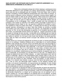 QUELLES SONT LES CRITIQUES QUE PLATON ET ARISTOTE ADRESSENT A LA DÉMOCRATIE ATHÉNIENNE AU IVe SIÈCLE ?