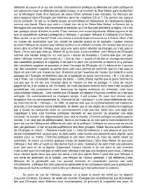 L’auteur Max Weber va tout d’abord se demander où est le problème des relations véritables entre éthique et politique. Qu’est ce qui ne va pas dans cette relation sincère entre une science morale et une active directive autonome? Il ne voit pas où est le problème de cette relation. Il s’interroge encore une autre fois mais cette fois en disant que l’éthique et la politique sont deux « sphères » et qu’avant on disant qu’il n’y avait aucun rapport entre ces deux mondes. Max Weber s’interroge à nouveau sur le faite qu’il y aurait une chose simple à faire. Il faudrait avoir une seule et même éthique capable de satisfaire à la fois la politique mais tout autre domaine aussi. Max Weber nous apprend qu’il cru auparavant y avoir une opposition entre politique et éthique. Et que les personnes disaient soit tu es dans le domaine de l’éthique soit tu es dans le domaine de la politique. Il fallait choisir, il fallait faire un choix. On ne pouvait pas être dans les deux en même temps. Soit on était plus du côté de la morale soit plus du côté de la politique. Cela implique qu’il y avait sûrement deux « catégories »: les moraux et les politiques. On sait que l’éthique c’est quelque chose de propre à soi-même mais Weber se demande tout de même si il n’existerait pas, dans le monde, une éthique commune à toutes et à tous qui leur imposerait des conceptions morales. Cette éthique peut imposer différentes conceptions morales. Par exemple comme le dit très bien Weber, les relations sexuelles, commerciales, privés, publiques,…À ce moment là, Weber certes se demande si l’éthique peut imposer des conceptions morales mais cela signifie implicitement que l’éthique serait comme la politique, elle imposerait des choses aux mondes. On a ici un sous-entendu de Max Weber. Avec cette phrase implicite de la part de l’auteur, il expose ensuite une question en disant « Peut-on vraiment croire que les exigences de l’éthique puissent rester indifférentes au fait que toute politique utilise comme moyen spécifique la force derrière laquelle se profile la violence? » Max Weber n’y croit pas du tout. Il se dit mais comment ces exigences peuvent fermer les yeux sur le fait que la politique utilise la force mais sous entendu qu’il a recourt à la violence. Comment on peut autoriser ça? C’est comme si un homme politique se dit morale mais qu’il proclame la violence. Non, tu peux pas être une personne qui se dit morale mais qui utilise la violence. Ce n’est pas compatible. L’auteur du texte met dans son texte des petits extrait d’Evangile selon Matthieu. Il déclare à ce moment-là, que l’être humain paie souvent par sa mort la violence qu’il a exercé. Celui qui est acteur de la violence sera victime de cette même violence. Cet être humain récolte ce qu’il a semé. En rapport avec la politique et l’éthique, la personne qui utilisera la politique utilise la force donc la violence mais plus tard la roue tournera et cette violence lui retombera dessus. Il subira cette même violence qu’il aura fait subir aux autres. En plus de cette violence, il y a une opposition entre les deux adversaires où chacun s’efforce à faire triompher sa cause. C’est ce que l’on appelle la lutte et elle se trouve de partout tant au niveau de la politique que de l’éthique. Toute personne va défendre sa cause et ce qui est normal. Une personne politique va défendre son parti politique et une personne moral va défendre ses idées moraux. A ce moment-là, Max Weber parle du Sermon sur la Montagne traite d’un discours de Jesus Christ adressé à ses disciples. Ce discours est alors rapporté dans l’Evangile par Matthieu dans les chapitres 5,6 et 7. Ce sermon est typique d’une conduite l’or ale ou la liberté puisse se concrétiser en obéissance, et l’obéissance respire comme une liberté. Parce que celui-ci n’obéit rien de la loi. Selon Max Weber, le Sermon sur la Montagne est une chose très importante et sérieuse, qu’il ne faut pas prendre à la légère. Ce n’est pas quelque chose d’inutile ou autre. C’est vraiment une chose importante. Weber exprime le fait que la causalité en science correspond à l’éthique. Il compare l’éthique à l’utilisation d’un fiacre. Mais qu’est ce qu’un fiacre? C’est une voiture a cheval louée à la course ou à l’heure. Donc c’est un moyen de locomotion que l’on choisit de prendre quand on le souhaite. L’auteur insinue qu’avec l’éthique on ne peut pas l’utiliser comme-ci on utilisait un fiacre. On ne peut pas pour une action être du côté de l’éthique puis pour une autre action décider de changer, ce n’est pas un fiacre. On ne peut pas faire ça. Weber dit qu’on peut, à une condition, voir l’éthique de l’Évangile comme une morale lorsqu’on n’y voit qu’un « recueil de trivialités ». C’est-à-dire que l’on peut traiter l’éthique comme une morale du « « tout au rien » » quand on étudie un ouvrage réunissant des caractères grossiers et vulgaires. Il dit que l’on peut voir ça comme un fiacre si on y voit que des caractères vulgaires et grossiers or dans l’ouvrage de l’Évangile on n’y retrouve en n’aucune cas des caractères vulgaires ou autres donc cela nous permet de confirmer que ce n’est pas un fiacre et que c’est une morale de tout. Illustrons ça par l’exemple de l’auteur qui traite d’un autre passage de l’Évangile de Matthieu celui de la parabole du jeune homme riche. « Et il s’en alla le cœur triste, car il possédait beaucoup de biens. » Cette phrase signifie que le jeune homme ne voit pas que la vie est une richesse dans la mesure où elle se partage. A force de vouloir gagner sa vie, il en oublie la vie. En réalité, ce n’est pas jeune homme riche mais c’est un pauvre possédé par ses possessions avec beaucoup de signes extérieurs de richesses, mais sans vr