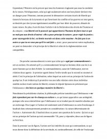 Cependant, l’Histoire est la preuve que tous les hommes n’agissent pas sous la conduite de la raison. Véridiquement, celui qui agit seulement selon son bon plaisir devient vite un danger pour l’Homme, comme peuvent le démontrer certains écarts de liberté qui tissent le berceau de la tyrannie et qui favorisent les conflits et les guerres en tout genre, orchestrés par des tyrans égoïstement assoiffés par leur désir de pouvoir, dénués de toute raison. De plus, il est dit dans l’article 6 de la Déclaration des droits de l’homme et du citoyen : « La liberté est le pouvoir qui appartient à l’homme de faire tout ce qui ne nuit pas aux droits d’autrui : elle a pour principe la nature ; pour règle la justice ; pour sauvegarde la loi ; sa limite morale est dans cette maxime : Ne fais pas à un autre ce que tu ne veux pas qu’il te soit fait. », ainsi ; pour poursuivre notre explication, on peut se demander si le principe de la liberté et celui de la règlementation sont compatibles.