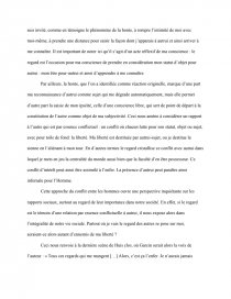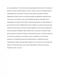 Autrui est mon alter ego, un autre moi qui n’est pas moi. Grâce à autrui je peux me saisir de manière indirecte, car étant un sujet conscient je souffre d’un manque d’identité, de totalité. En se présentant comme un autre moi extérieur de moi, autrui peut de manière indirecte m’aider à me saisir de manière objective. Autrui pourrait ainsi m’aider à gagner en objectivité pour acquérir des connaissances justes sur moi. Si autrui était absent je ne pourrais pas me connaître de manière objective et j’aurais une vision erronée et complaisante de moi-même. De plus, si autrui était absent je devrais vivre dans la solitude. La solitude peut être un sentiment pesant et difficile à assumer. Elle peut faire sombrer un homme dans une mélancolie profonde qui pourrait se rapprocher de l’enfer. Il semblerait ainsi que l’absence des autres pourrait être l’enfer.