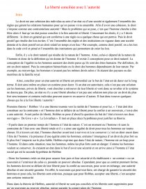 Donc dans la théorie de Hobbes, autorité et liberté ne sont pas conciliés et les libertés sont supprimées pour qu’un souverain au pouvoir absolue, puisse garantir la conservation de l’homme.