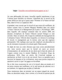 Sujet : Travaille-t-on seulement pour gagner sa vie ?