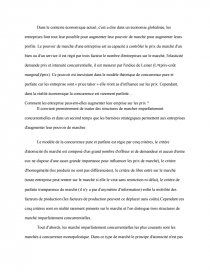 Dans le contexte économique actuel, c'est a dire dans un économie globalisée, les entreprises font tout leur possible pour augmenter leur pouvoir de marché pour augmenter leurs profits. Le pouvoir de marché d'une entreprise est sa capacité à contrôler le prix du marché d'un bien ou d'un service il est régit par trois facteur le nombre d'entreprises sur le marché, l'elasticité demande prix et intensité concurrentielle, il est mesurer par l'indice de Leiner (L=(prix-coût marginal)/prix). Ce pouvoir est inexistant dans le modèle théorique de concurrence pure et parfaite car les entreprise sont « price taker » elle n'ont as d'influence sur les prix. Cependant, dans la réalité économique la concurrence est rarement parfaite...