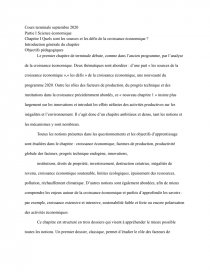 Toutes les notions présentes dans les questionnements et les objectifs d’apprentissage sont étudiées dans le chapitre : croissance économique, facteurs de production, productivité globale des facteurs, progrès technique endogène, innovations,