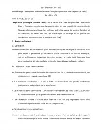 * Les matériaux semi-conducteurs : Le Gap entre la BV et la BC est assez faible (1.12eV pour Si). Une conductivité qui augmente fortement avec la température.