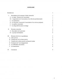 Je vous présente le plan de mon dossier que je les réalisées au mois d’octobre 2017: je commence par la présentation de la structure d’aide à domicile, ensuite la présentation de la personne concernée, puis le moment clé de la vie quotidienne et je finis par la conclusion.