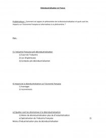 Discours : Comment est apparu le phénomène de la désindustrialisation et quels sont les impacts sur l’économie française et alternatives à ce phénomène ?. Recherche parmi 303 000+ dissertationsPar Simon Léonard • 6 Février 2018 • Discours • 624 Mots (3 Pages) • 743 Vues