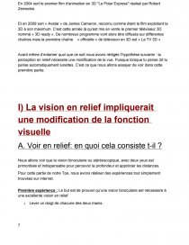 I) La vision en relief impliquerait une modification de la fonction visuelle page 7