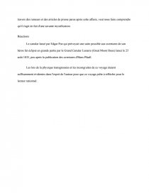 Le canular lancé par Edgar Poe qui prévoyait une suite possible aux aventures de son héros fut éclipsé en grande partie par le Grand Canular Lunaire (Great Moon Hoax) lancé le 25 août 1835, peu après la publication des aventures d'Hans Pfaall.