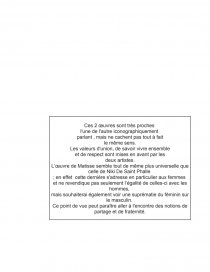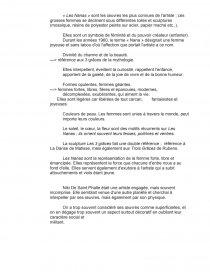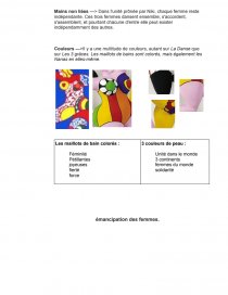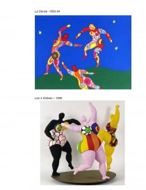 L'artiste ultra féministe explore les différentes représentations artistique de la Femme ; Son œuvre la plus connue sont les Nanas, « grosses femmes » chahuteuses, dansantes.