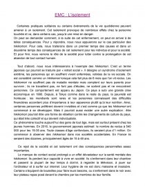 Dissertation : L'isolement. Recherche parmi 303 000+ dissertationsPar 02reika • 12 Février 2023 • Dissertation • 962 Mots (4 Pages) • 1 469 Vues
