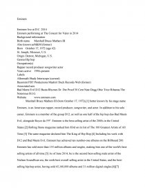 Commentaire de texte : Biographie d'Eminem (document en anglais). Recherche parmi 303 000+ dissertationsPar kelly93 • 2 Mars 2015 • Commentaire de texte • 524 Mots (3 Pages) • 2 000 Vues