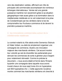 Premièrement, Venise et ses contacts commerciaux et par la suite, les innovations commerciales autour de la méditerranée médiévale.
