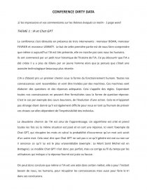 Résumé : Conférence Dirty data. Recherche parmi 303 000+ dissertationsPar avalon00830 • 14 Décembre 2023 • Résumé • 576 Mots (3 Pages) • 236 Vues