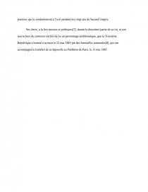 Ses choix, à la fois moraux et politiques[7], durant la deuxième partie de sa vie, et son œuvre hors du commun ont fait de lui un personnage emblématique, que la Troisième République a honoré à sa mort le 22 mai 1885 par des funérailles nationales[8], qui ont accompagné le transfert de sa dépouille au Panthéon de Paris, le 31 mai 1885.
