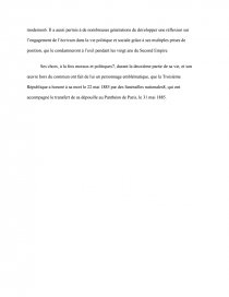 Ses choix, à la fois moraux et politiques7, durant la deuxième partie de sa vie, et son œuvre hors du commun ont fait de lui un personnage emblématique, que la Troisième République a honoré à sa mort le 22 mai 1885 par des funérailles nationales8, qui ont accompagné le transfert de sa dépouille au Panthéon de Paris, le 31 mai 1885.