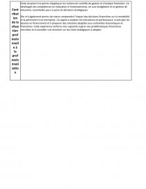 Contribution de la situation professionnelle à la professionnalisation  | Cette situation m’a permis d’appliquer les notions de contrôle de gestion et d’analyse financière. J’ai développé des compétences en évaluation d’investissements, en suivi budgétaire et en gestion de trésorerie, essentielles pour la prise de décisions stratégiques. Elle m’a également permis de mieux comprendre l’impact des décisions financières sur la rentabilité et la pérennité d’une entreprise. J’ai appris à analyser les indicateurs de performance, à anticiper les besoins en financement et à proposer des solutions adaptées aux contraintes économiques et financières. Cette expérience renforce mes capacités à gérer des problématiques financières concrètes et à conseiller une direction sur les choix stratégiques à adopter.  |