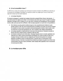 - Cependant si écouter de la musique est accessible à tous, quand est-il de la pratique ? Peut-on dire que la musique est un art populaire à la portée de quiconque souhaite le pratiquer. Et plus largement n’existe-t-il pas une distinction entre musique dites populaires s’adressant à un large public et une musique plus exigeante dites élitiste dont les subtilités séduisent un nombre plus restreint d’auditeurs.