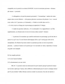 - Les discours rapportés, il mélange le discours direct et le discours indirect-libre « il y a un vol, se demanda-t-il » « J’ai rêvé que ta maison » « Des ennemis, les Romans » « Est-ce qu’on peut dire ça à un ami » → ces deux discours permettent d’avoir accès aux paroles du perso qui sont livrés sans intermédiaire, le discours indirect-libre permet d’avoir accès à son introspection à propos de JCR, ce pdv n’est pas neutre d’autant que c’est celui d’un proche, il est orienté, favorable à JCR, le lecteur est influencé et est enclin au doute