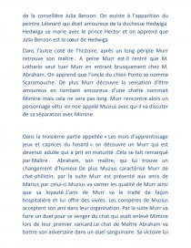 Ce conte fantastique écrit part E.T.A Hoffmann divisé en quatre parties nous raconte l’histoire du chat nommé Murr ainsi que en parallèle la discussion des « humains » appelés « placards ».