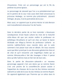 Abraham apellé M.Liscov et on apprend que celui-ci été auparavant Facteur d’orgues. On assiste aussi à l’apparition de la conseillère Julia Benzon. On assiste à l’apparition du peintre Léonard qui était amoureux de la duchesse Hedwiga. Hedwiga se marie avec le prince Hector et on apprend que Julia Benzon est la sœur de Hedwiga