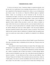 Ce texte est un extrait de l’essai « Construction étatique et construction nationale » écrit par Juan José Linz et publié dans la revue scientifique European Review en 1993. Cet essai met en opposition les États disposant du monopole de la violence et ceux ne la disposant pas pour diverses causes. Une ouverture sur l’objectif des différents régimes est également réalisée. L’auteur est un sociologue au sein de l’université de Yale. Ses travaux sur l’autoritarisme sont réputés. Au travers de ce texte, Juan José Linz fait directement référence au principe de monopole de la violence théorisé par Weber. L’auteur expose les différentes violences que l’Etat peut exercer sur les différentes populations. Il met également en opposition d’autres modèles d’États qui peinent à exercer cette violence en étudiant ces causes. Enfin il fait le lien avec les intentions des Etat à avoir des objectifs collectifs ou non. C’est à partir ce cela qu’il parait pertinent de se demander comment les États possèdent-ils une autorité suffisante pour exercer une violence légitime ? Ainsi nous pouvons également nous poser la question de jusqu’où celle-ci peut-elle s’exercer et à quel prix ? Pour cela nous étudierons dans un premier temps les fondements de la légitimité auprès des population pour assurer une autorité pour ensuite analyser les fragilités de la légitimité lors de différentes crises.